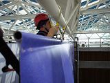 吊車無法進入,內部空間高達十五米,而地磚特殊施工及工期的因素而無法搭建鷹架。而業主不放心沒有認證的施工人員;因此找上了台灣目前唯一的IRATA會員公司-亞陞。