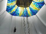 從教堂裡的地面爬繩子到教堂屋頂上方的玻璃清潔。 <more>