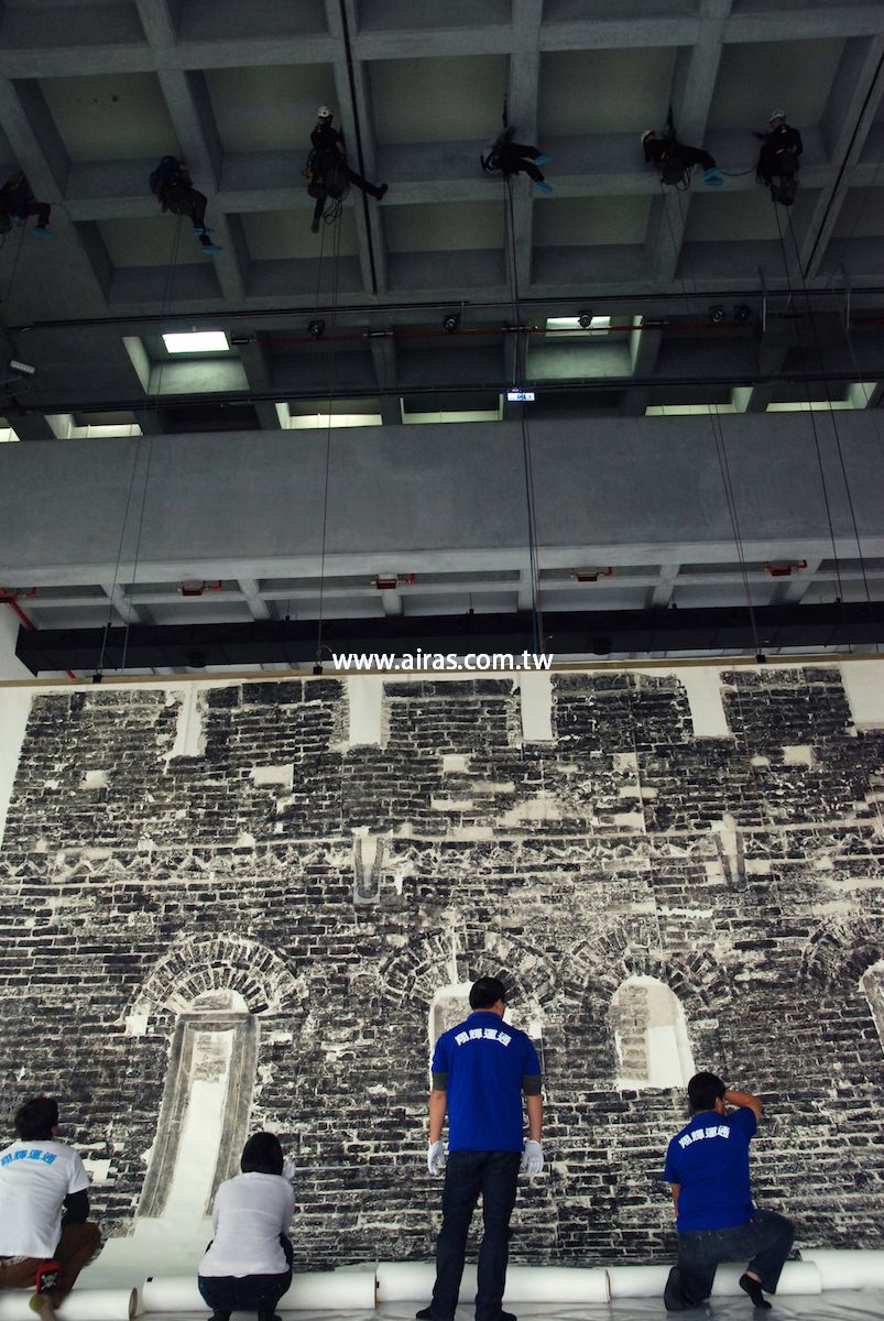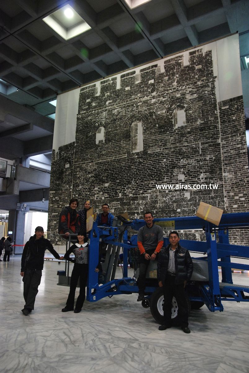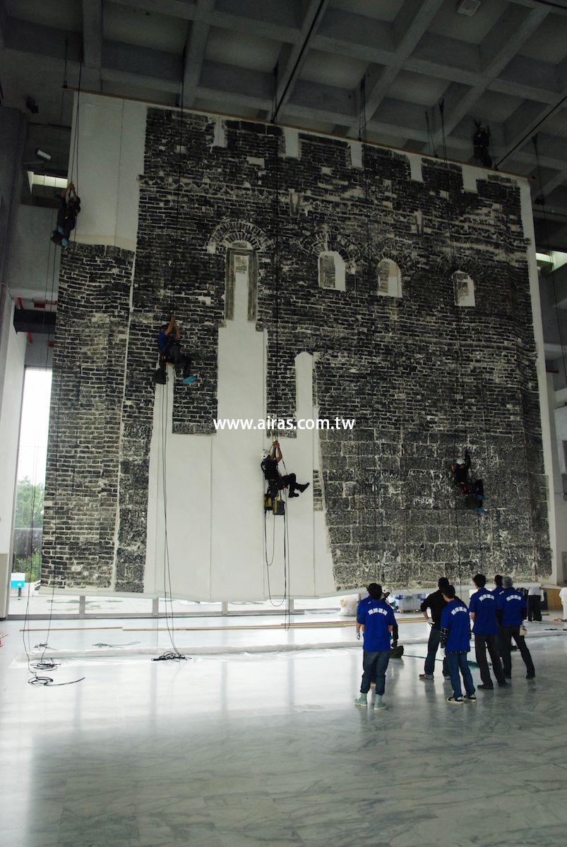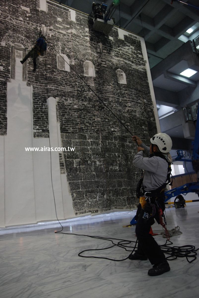 台北市立美術館為中國藝術家徐冰所辦的回顧展,其中成名作鬼打牆更是全世界第三次展出,這雖然不是亞陞第一次進入北美館的環境工作,卻是亞陞第一次吊掛一個真正的作品,那需要精準及細膩度更有別於過去吊掛物件。